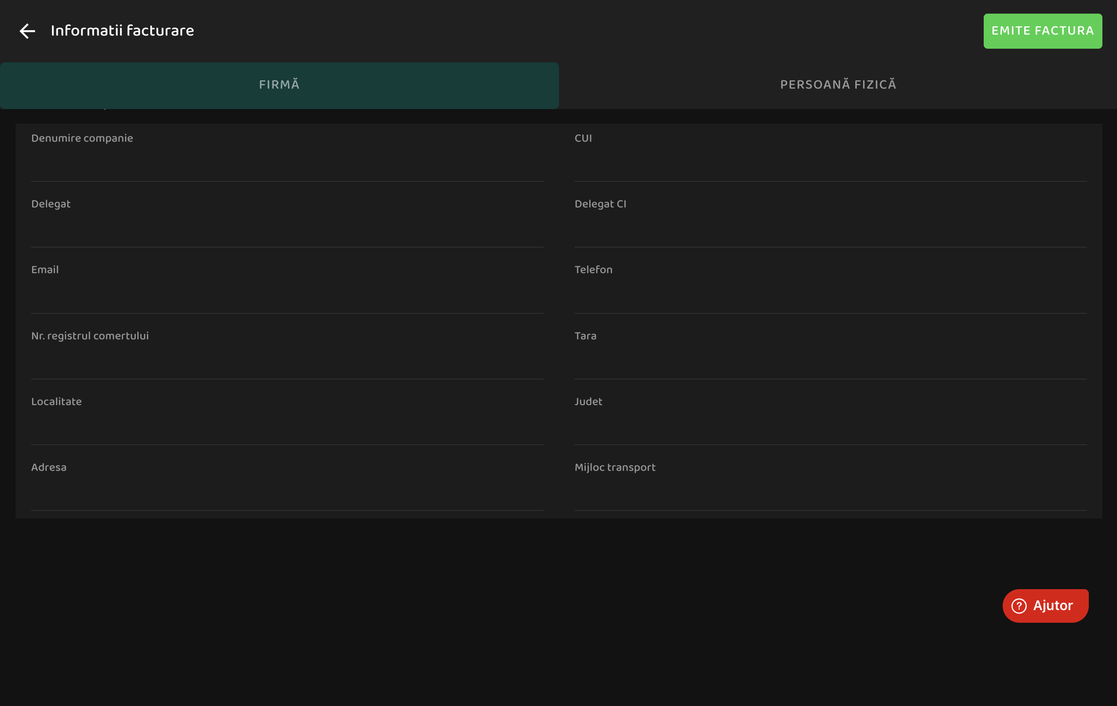 Notă 3: Factura poate fi emisă pe firmă sau persoană fizică, în funcție de tab-ul selectat și informațiile completate.